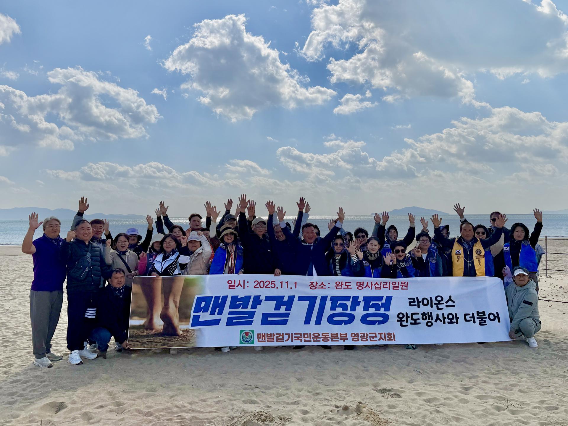 국제라이온스협회355-B2지구는 11월 1일, 해양치유 일번지 완도 신지 명사십리해수욕장 이벤트광장에서 제19회 라이온스가족 맨발걷기 및 보물찾기 행사를 개최하였다. 이번 행사는 맑은 바다와 백사장을 함께 걸으며 건강의 소중함을 되새기고, 서로 간의 우정을 나누기 위해 마련되었다.